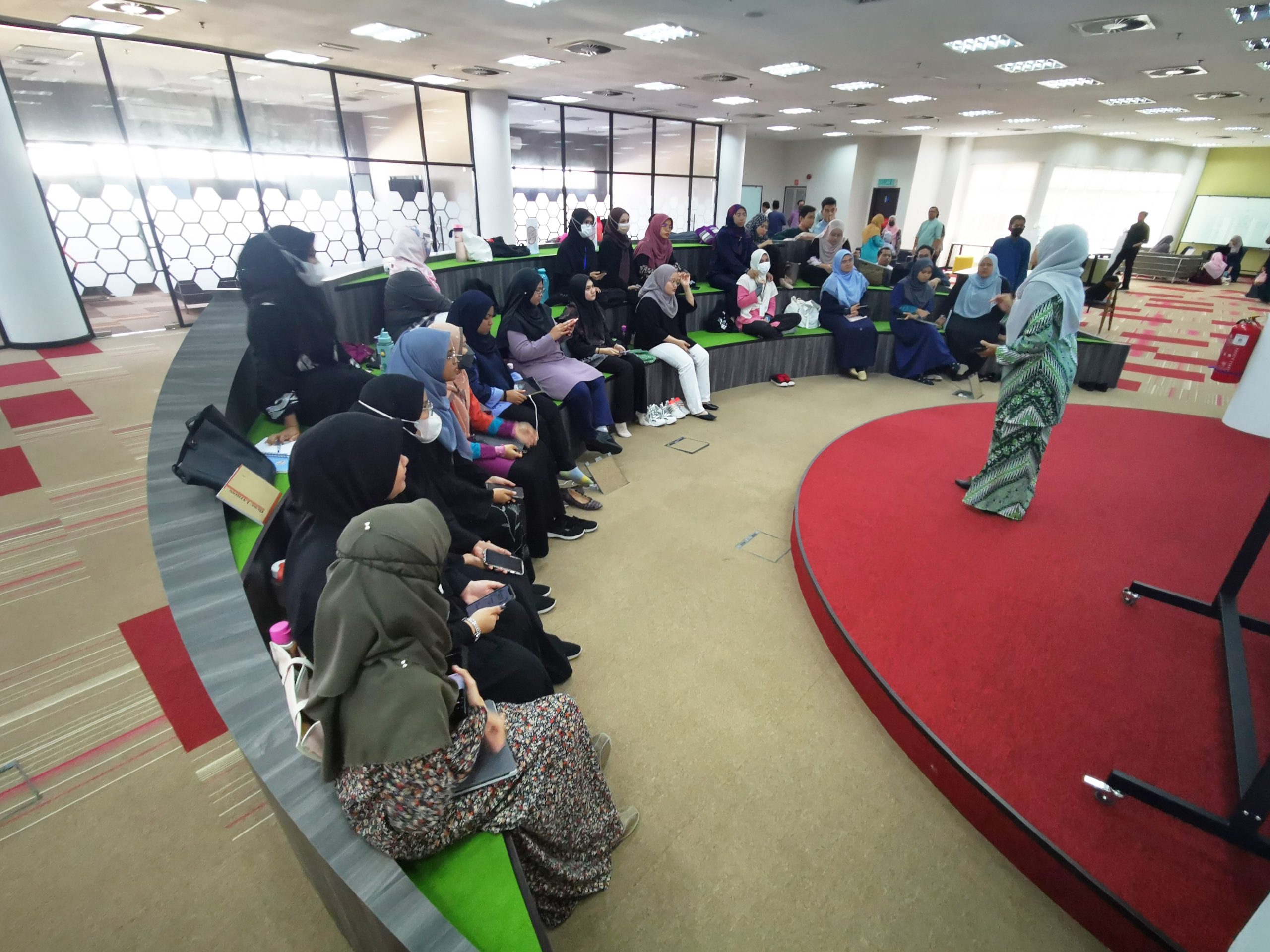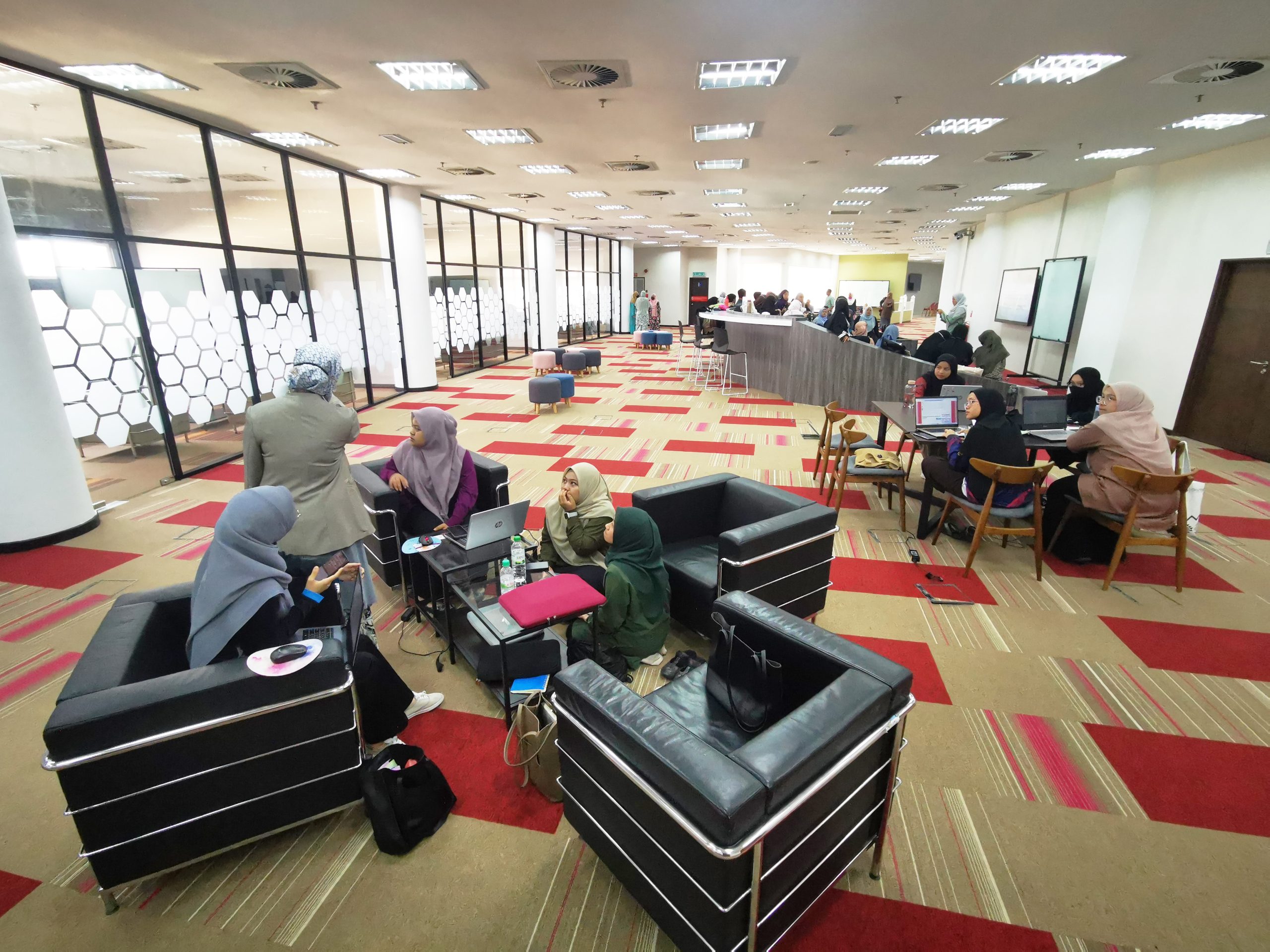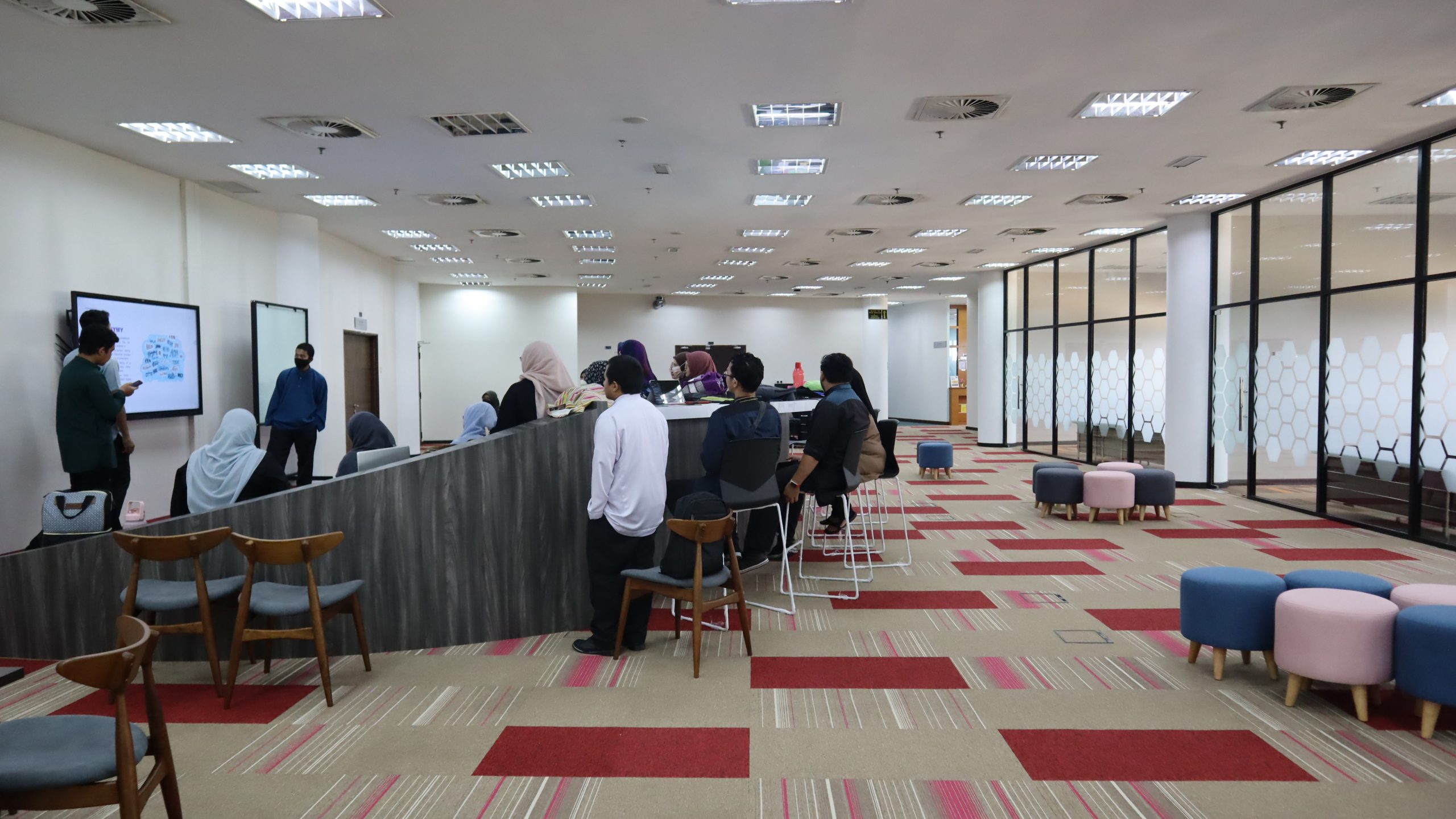 - Ruang santai berkonsep terbuka yang memberi kebebasan kepada pengguna untuk melakukan aktiviti yang merangsang daya fikir pengguna.